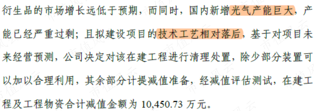 亏损的原因还有9,700万元的固定资产减值,1.05亿元的在建工程减值。