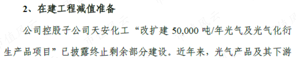 “改扩建50,000吨/年光气及光气化衍生产品项目”发生延期,最终也部分终止;