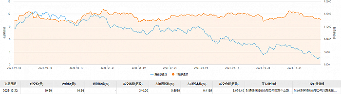 华软科技12月22日大宗交易成交340万股,成交额3624.4万元,占当日总成交额的38.69%,成交价10.66元,较市场收盘价持平。