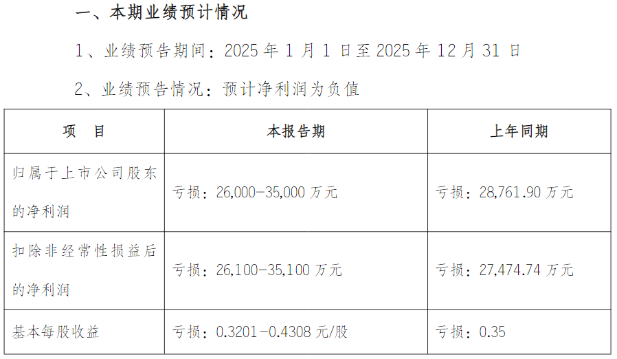 华软科技发布的2025年业绩预告显示,预计2025年归母净利润亏损2.6亿元至3.5亿元,扣非净利润亏损2.61亿元至3.51亿元。