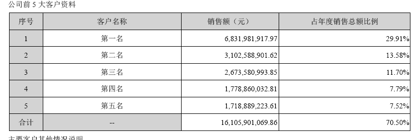 值得注意的是,2018年-2020年之间,欧菲光的前五名客户合计销售金额一直占据其年度销售总额的80%以上。其中,欧菲光来自第一大客户苹果的相关营业收入分别为83.29亿元、116.98亿元、145.12亿元,占当期营收总额的比重分别是19%、22.51%、30.01%。