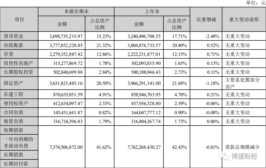 2023年半年报显示,欧菲光短期借款、长期应付款、长期借款、一年内到期的非流动负债合计达73.7亿元,占总资产的41%,仍承担着巨大的资金链压力,让本来毛利就不高的业绩雪上加霜。