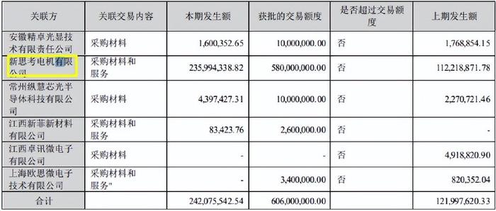 欧菲光财报显示,2023年,公司向新思考采购商品金额为3.24亿元;2024年上半年,其向新思考采购金额为2.36亿元,全年获批交易额度为5.80亿元。