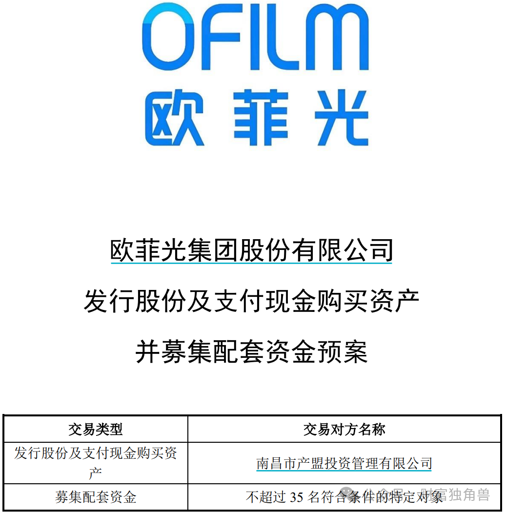 2025年4月16日,欧菲光发布公告称,拟通过发行股份及支付现金的方式购买欧菲微电子的28.2461%股份,同时拟向不超过35名特定投资者发行股份募集配套资金。据悉,欧菲微电子主营业务为指纹识别模组、光学传感模组、PC触控板的研发、生产及销售。