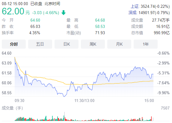 8月12日,晶澳科技报收62.00元/股,跌幅4.66%,总市值990.99亿元。而就在8月2日,该公司市值刚刚突破千亿!