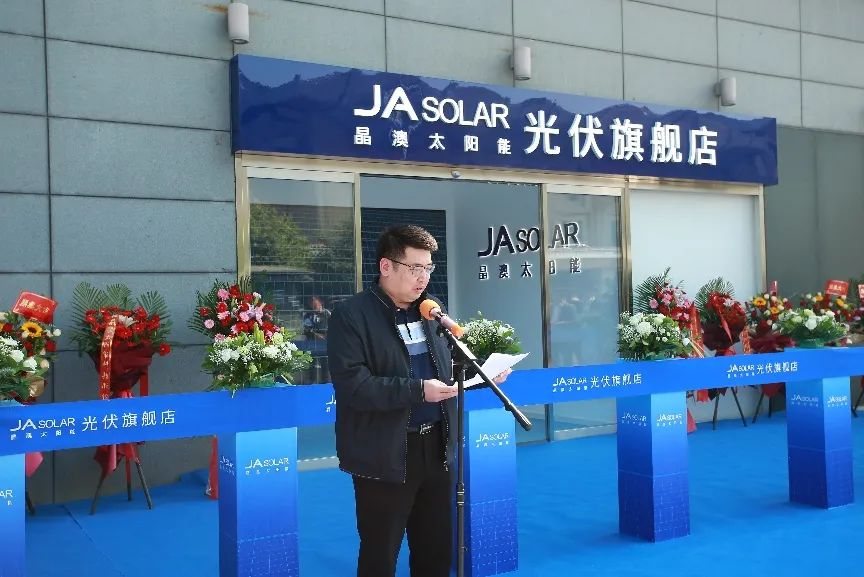 山东省太阳能行业协会秘书长彭飞,晶澳科技助理总裁李栋,晶澳科技中国区商用户用总经理闫宗辉,与媒体朋友和经销商代表们一起参加了开业庆典。