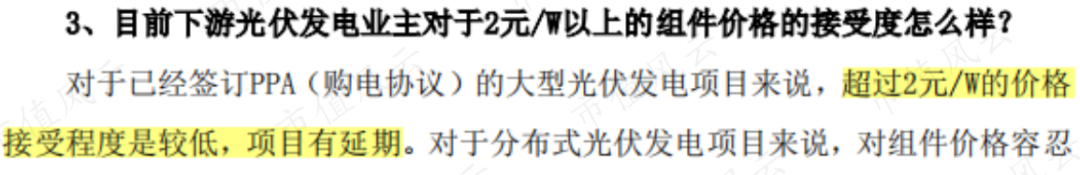 下游电池组件售价虽从去年10月1.7元/瓦左右均价上涨至如今2元/瓦均价,但大客户对涨价接受度较低,导致项目有延期。