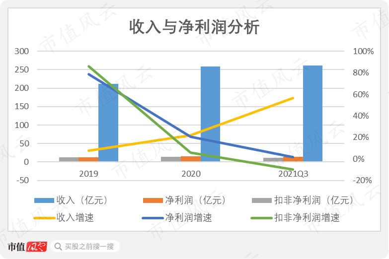 根据公司三季报披露,公司前三季度收入规模累计261亿,较同期增长达到56%。净利润13.6亿,同期增速仅为1.6%。扣非净利润较同期下降,增速为-9.7%。出现了明显增收不增利的情况。