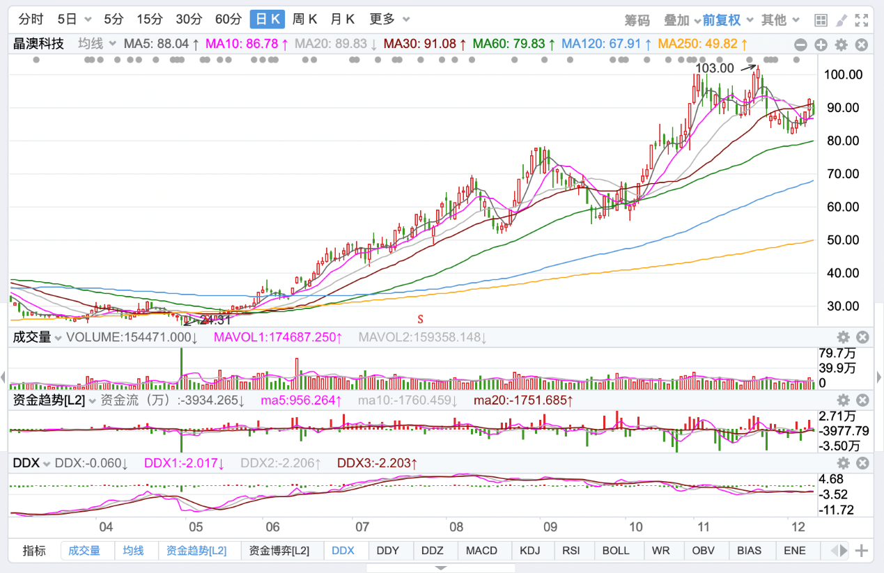 11月22日,晶澳科技在触及最高点103元/股后,第二天股价闪崩一度接近跌停,短短3日内股价跌幅达14%,市值缩水近200亿元。与此相应的是,公司及子公司受到行政处罚、限售股解禁的公告接连发布。
