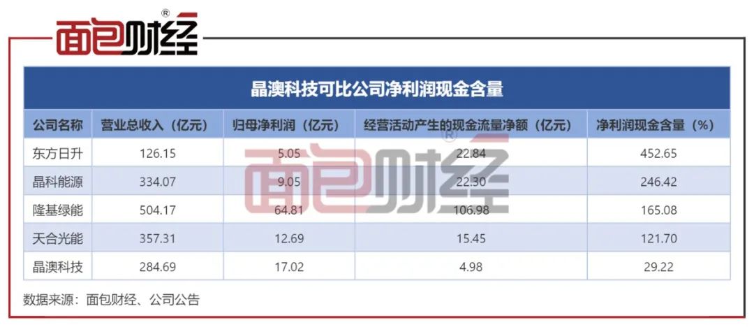 但是,晶澳科技的变现速度不及业绩增速。2022年1-6月,晶澳科技经营净现金流为4.98亿元,同比增加15.65%;净利润现金含量仅约29%,同期5家可比公司的净利润现金含量均超过100%。