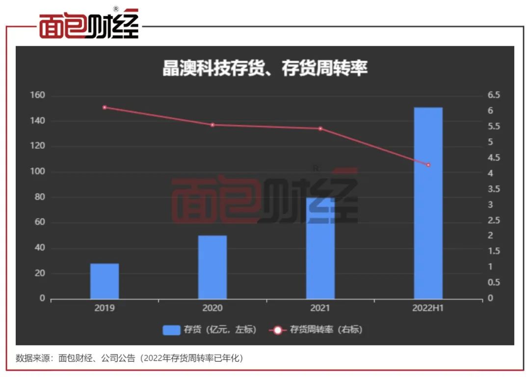 与此同时,公司的存货规模较大,2022年6月末晶澳科技存货余额达到150.78亿元,总资产占比超过20%。2022年1-6月,晶澳科技的年化存货周转率为4.29,自2019年持续下降,公司的存货消化及减值风险值得注意。