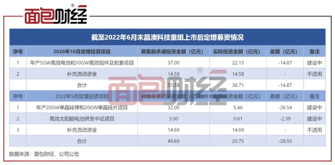 资料显示,晶澳科技重组上市后已进行过2轮定增募资,第一次在2020年10月,募资净额约51.58亿元;第二次为2022年5月,募资总额约49.69亿元。两轮募资均用于扩产、补充流动资金,其中用于补充流动资金的部分合计超过29亿元。