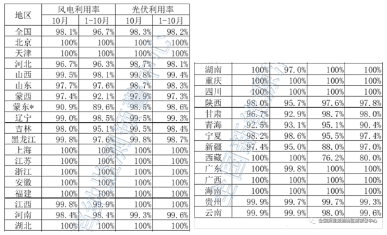 7、2022年1-10月全国光伏利用率98.2%、风电96.7%