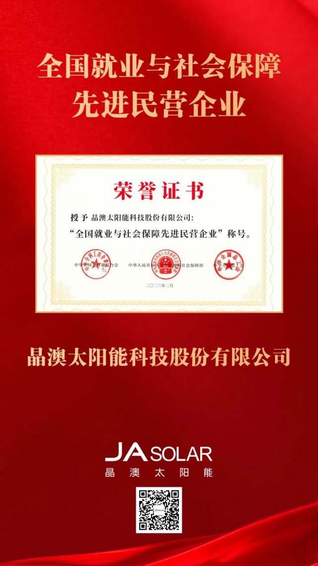 这一荣誉是对晶澳科技积极推动企业高质量发展、主动承担社会责任,促进就业和劳动者权益保障方面所具有的良好社会声誉和示范效应的肯定。