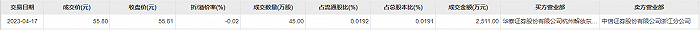 晶澳科技4月17日大宗交易成交45万股,成交额2511万元,占当日总成交额的2.9%,成交价55.8元,较市场收盘价55.81元折价0.02%。