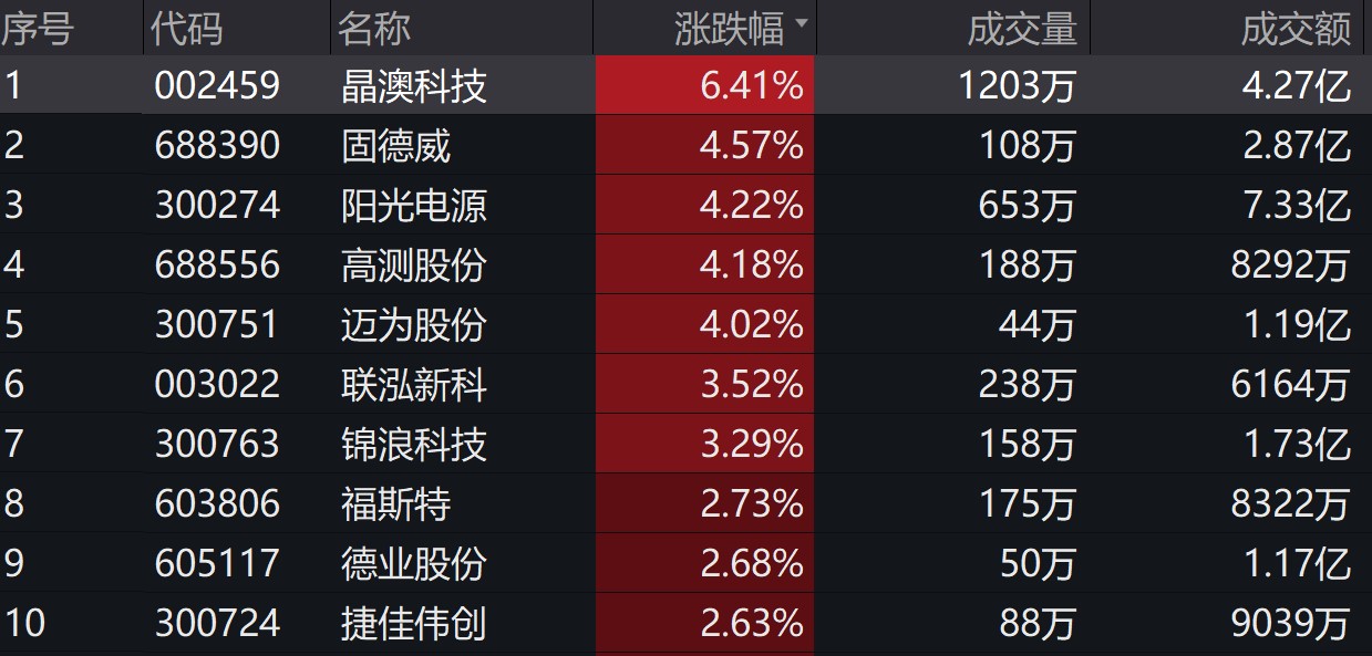 基金紧密跟踪中证光伏龙头30指数,后者现涨2.09%,报2707.25点;指数成分股中,晶澳科技上涨6.41%,固德威上涨4.57%,阳光能源、高测股份等个股跟涨。