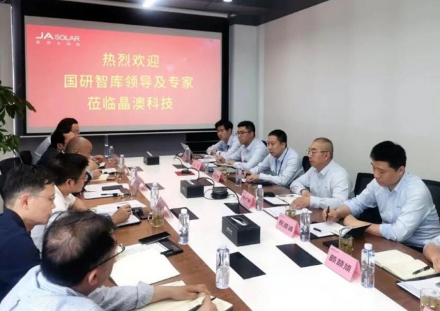 5月11日下午,中国发展出版社总编辑、国研智库董事长梁仰椿一行到访晶澳科技北京总部,来自国务院发展研究中心、国家发展和改革委员会、工业和信息化部等单位的专家一同到访。晶澳科技董事长靳保芳、高级副总裁孙广彬等热情会见梁仰椿一行,并与专家组进行了深入交流。