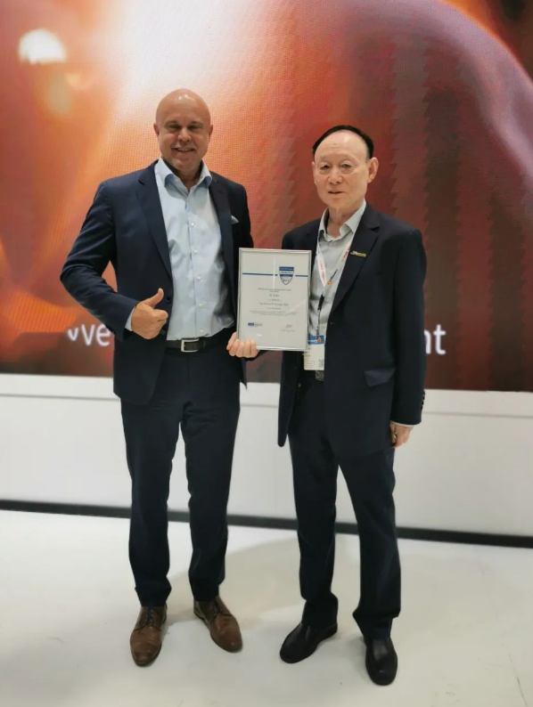 2023年Intersolar展在德国慕尼黑国际博览中心火热进行中,晶澳科技携多款高效产品惊艳亮相A2.260展位,吸引了众多参展观众驻足了解。6月15日,来自EUPD Research的专家为晶澳科技现场颁发了欧洲“顶级光伏品牌”荣誉。EUPD Research董事长Markus A.W. Hoehner,晶澳科技董事长靳保芳出席授证仪式。