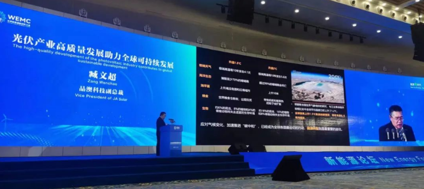 6月28日下午,晶澳科技副总裁臧文超受邀出席大会新能源论坛,并作《光伏产业高质量发展助力全球可持续发展》报告。