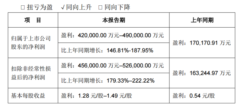 晶澳科技近日发布2023年上半年业绩预告,报告显示,公司2023年上半年预计或实现归属于上市公司股东的净利润为42~49亿元,同比增长146.81%-187.95%。
