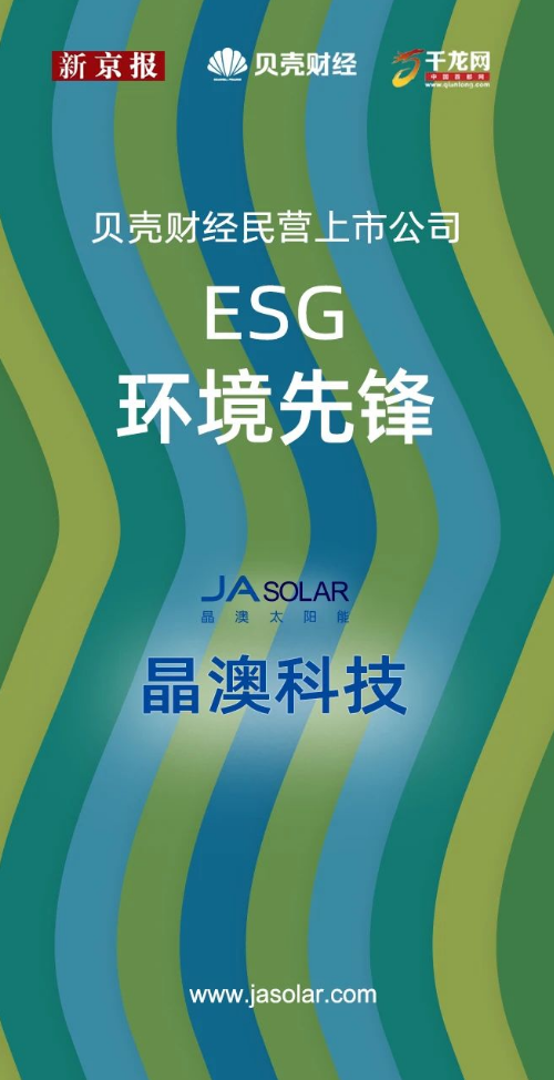7月17日下午,2023新京报贝壳财经夏季峰会“ESG引领绿色时代共赴可持续未来”主题论坛上,贝壳财经对3479家A股民营上市公司ESG现状做出评价,联合千龙网形成并发布《贝壳财经民营ESG先锋上市公司》,在799家披露ESG报告的民营上市公司中,共筛选出24家优质范例,晶澳科技入选“贝壳财经民营上市公司ESG环境先锋”,为民营企业ESG管理水平提升提供参考样本、助力民营企业加强ESG信息披露和实践、并在企业可持续发展战略转型的道路上贡献晶澳力量。