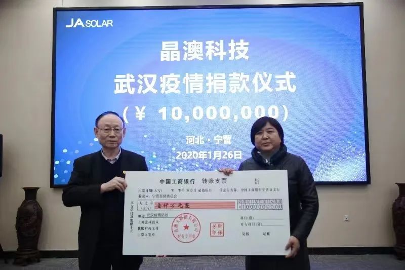 8月8日,晶澳太阳能科技股份有限公司(简称“晶澳科技”)捐赠1500万元支援我市灾后重建工作,以实际行动践行龙头企业社会责任担当。