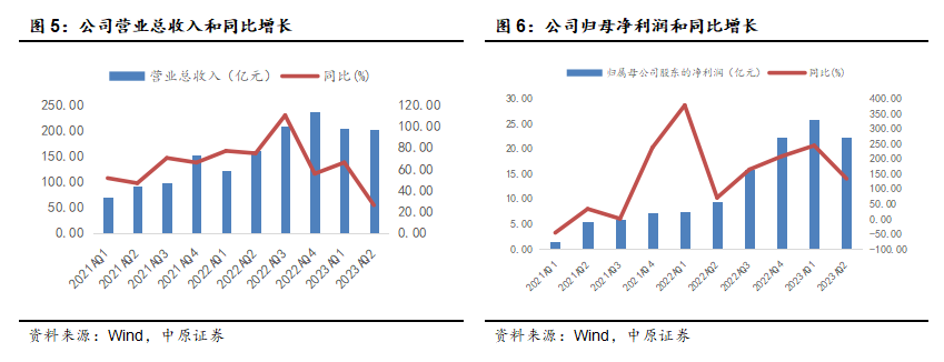 公司公布2023年中报:公司实现营业收入 408.43亿元,同比增长43.47%;实现归属于上市公司股东的净利润为 48.13亿元,同比增长182.85%;经营活动产生的现金流量净额48.32亿元,同比增长878.13%;加权平均净资产收益率16.10%,同比提升7.21个百分点;基本每股收益1.46元/股。
