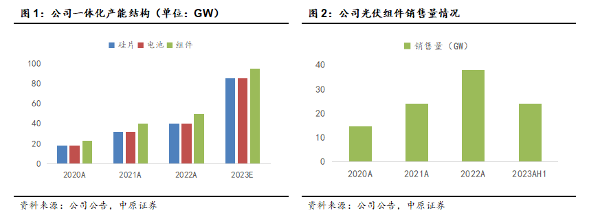 公司持续推动N型转型,深化一体化布局,实现智能制造增强成本优势。2023年上半年,公司先后投产越南 2.5GW 拉晶及切片、包头10GW 拉晶及切片(包头 20GW 拉晶及切片项目一期)、宁晋 6GW电池、邢台10GW 组件、合肥10GW组件等项目。预计到2023年底,公司光伏组件产能将达95GW,硅片和电池产能与组件产能匹配度在90%。其中,N型电池产能超过57GW,占比超过6成。公司不断通过产能扩张实现规模优势,进而提升对上下游的议价能力,形成成本优势。同时,公司实现以数字化和智能化对生产制造和运营管理赋能,提高生产效率,降低生产成本,提高供应链管理效率,推动公司业务高质量发展。