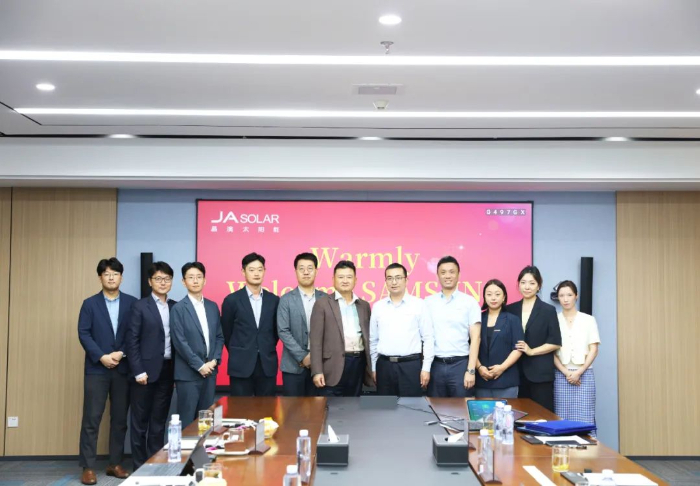 Kim在会谈中表示,晶澳科技作为光伏行业头部企业,在推动全球绿色能源转型过程中发挥了重要作用。此前,晶澳科技已与三星物产就关岛曼基劳88MW光伏项目和卡塔尔工业城市875MW光伏项目等重点光伏项目达成合作,双方合作硕果累累。三星物产对晶澳科技在过往合作中提供的支持表示感谢,也期待双方进一步加强沟通合作,挖掘更多契合点和对接点,实现资源互补、共赢发展。