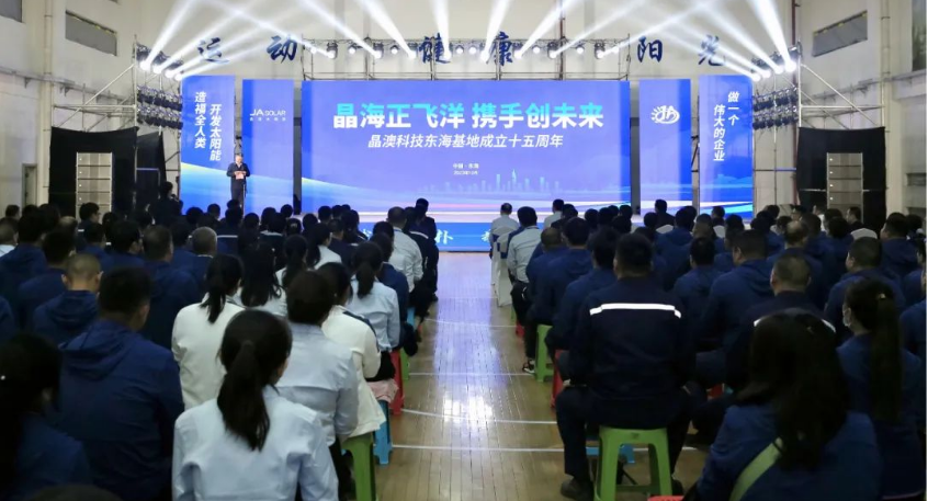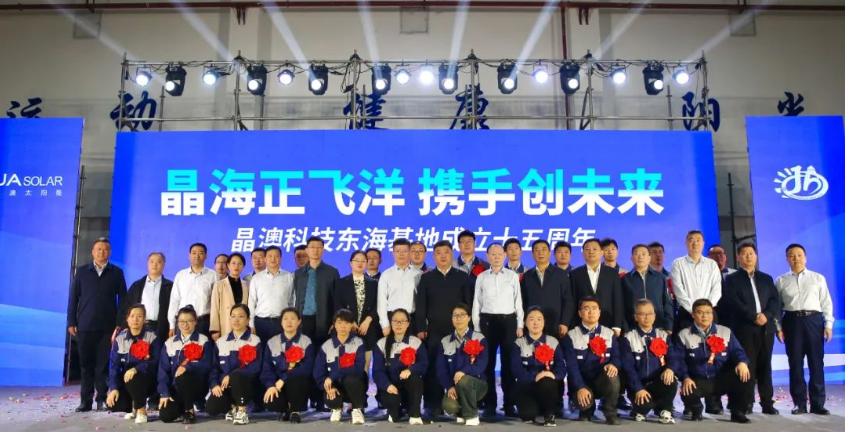10月13日,晶澳科技东海基地举行成立十五周年庆典活动,晶澳科技董事长靳保芳,东海县委常委、东海高新区、经开区党工委书记刘峰等有关领导出席活动,活动由晶澳科技副总裁李守卫主持。