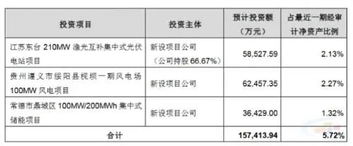 项目预估投资额合计15.74亿元,占最近一期经审计净资产比例为5.72%。
