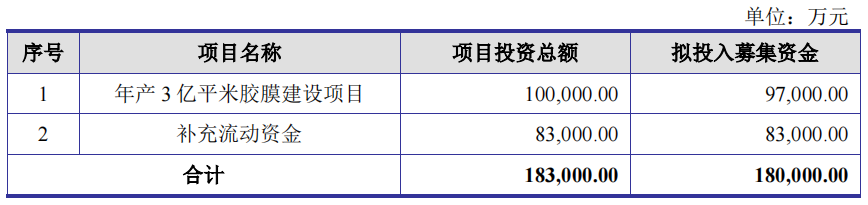 即便如此,祥邦科技也未曾放弃扩产,此次IPO,祥邦科技募资计划投建年产3亿平方米光伏胶膜。