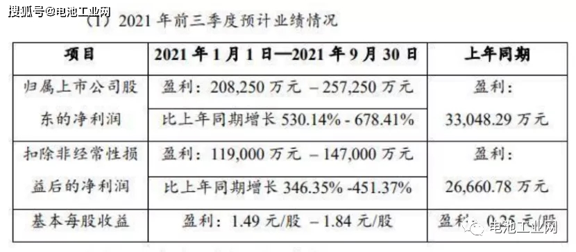 10月14日晚间,赣锋锂业对外披露了2021年前三季度业绩预告,公司预计2021年前三季度归属上市公司股东的净利润为20.83亿元—25.73亿元,比上年同期增长530.14%—678.41%;扣除非经常性损益后的净利润为11.9亿元—14.7亿元,比上年同期增长346.35%—451.37%。其中,第三季度归属上市公司股东的净利润为9.15亿元—10.92亿元,比上年同期增长456.22%—556.21%。