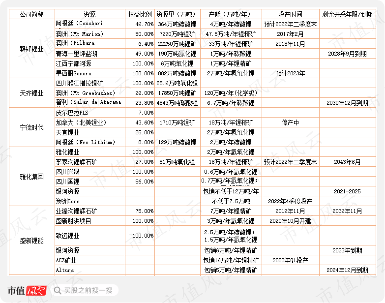 为了便于各位老板对锂资源及锂化合物制造企业的产能情况有更为清楚了解,风云君费时费力地制作上方资源储备以及产能释放时间。
