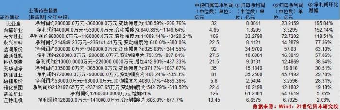 其中,赣锋锂业二季度利润环比增速为29.78%,雅化集团为19.18%。