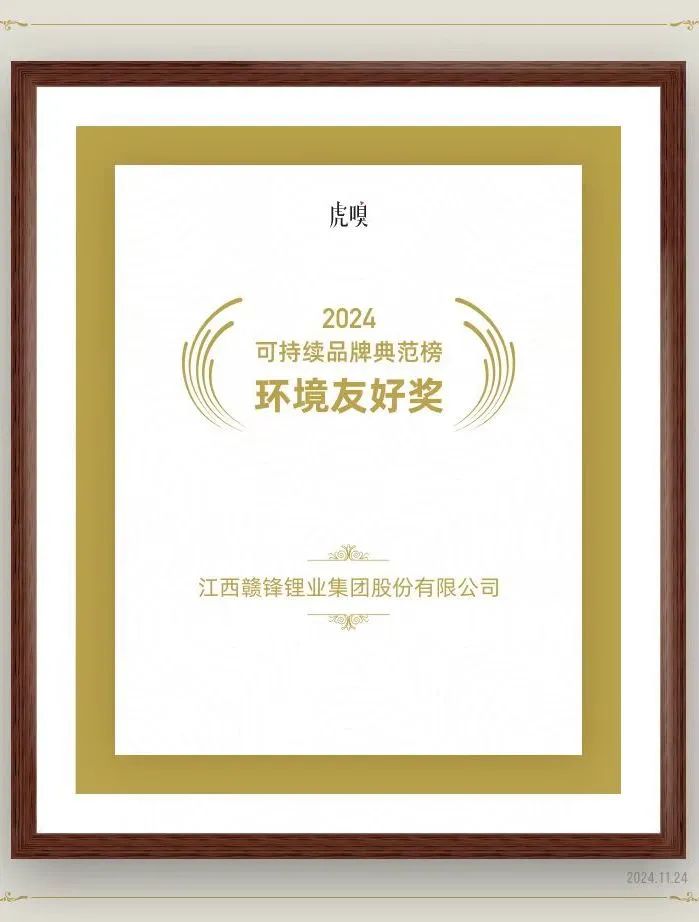 2024 年,我们在国际权威机构MSCI ESG指数评级中再度获评A级,并荣获中国驻阿根廷大使馆、中国商会(阿根廷)、阿根廷英国商会、虎嗅等机构授予的ESG奖项,亦从另一个侧面印证我们对环境和社会责任的坚定承诺。今年我们再度荣膺《财富》中国上市公司500强、中国民营企业500强、江西省民营企业100强等称号,入选全球新能源企业500强榜单,是荣誉亦是鞭策。