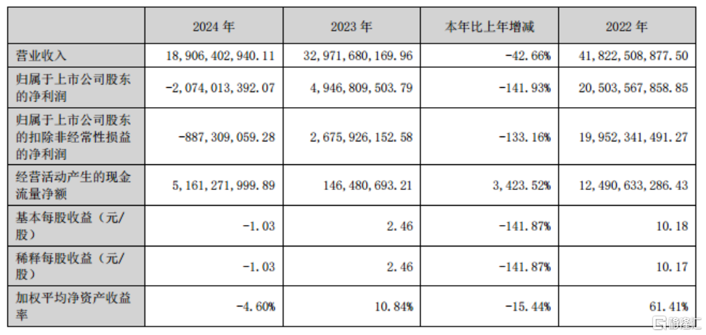 昨日晚间,锂业龙头赣锋锂业发布2024年年度报告,宣告上市以来首次年度亏损,2024年营收下降超四成。