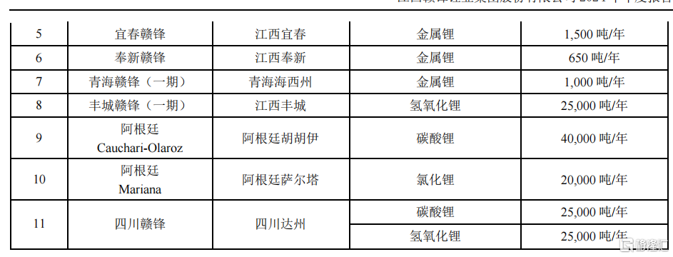 赣锋锂业在年报中提及,公司将根据未来锂产品的市场需求变化和评估选择扩充产能,计划于2030年或之前形成总计年产不低于60万吨LCE的锂产品供应能力,其中将包括矿石提锂、卤水提锂、黏土提锂及回收提锂等产能。