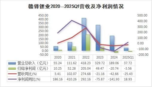 根据财报数据显示,赣锋锂业2024年营收189.06亿元,同比下滑42.66%,归母净利润为亏损20.74亿元,同比下降141.93%;2025年一季度净亏损3.56亿元;短期借款与一年内到期负债合计186.32亿元,利息费用同比激增30%。更严峻的是,其货币资金仅70.45亿元,流动性缺口已逼近百亿级别。