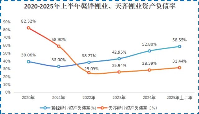 由于此前的扩张,赣锋锂业的资产负债率从2021年的33%攀升至2025年上半年的58.55%。