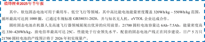目前,赣锋锂业研发的高性能低空飞行动力电池系列产品,电池能量密度覆盖320-550Wh/kg,已与知名无人机及eVTOL企业达成合作。