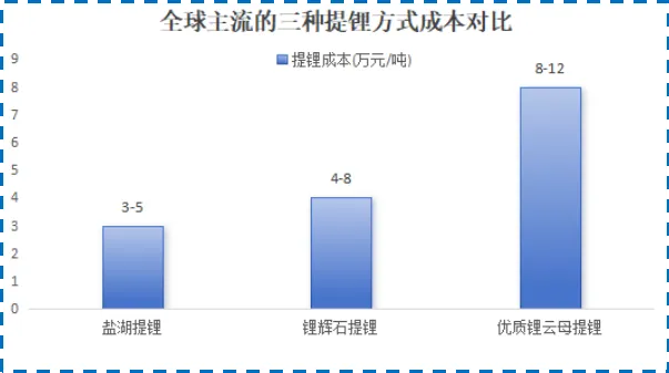 要知道,盐湖提锂是成本最低的锂资源开发方式,成本为3-5万元/吨,远低于锂辉石提锂的4-8万元/吨和优质锂云母提锂的8-12万元/吨。