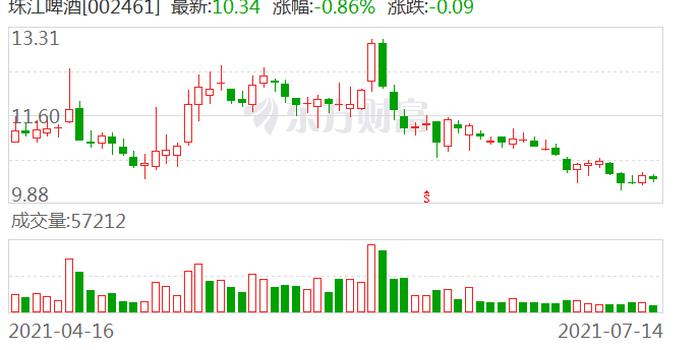 截至今日,珠江啤酒开盘10.4元/股,跌幅0.86%,报收10.34元/股。