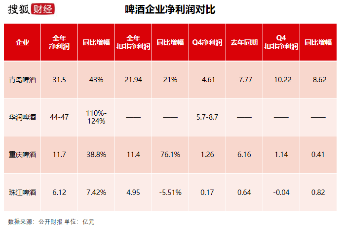 扣除非经常性损益后,青岛啤酒预计第四季度亏损约10.22亿元,上年同期亏损约8.62亿元,亏损额同样为同期近四年中最高值。