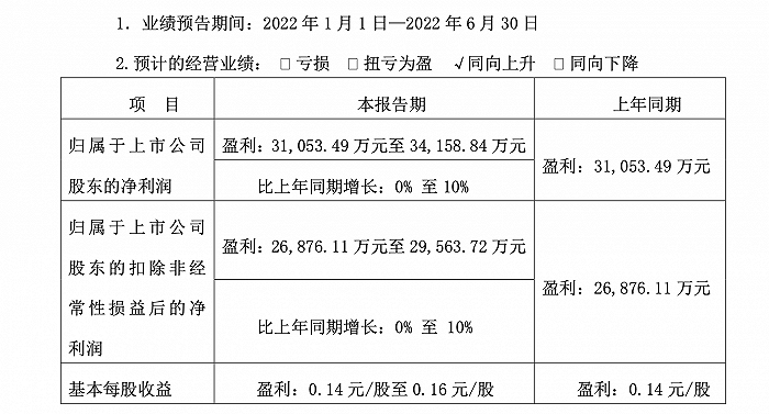 7月12日,广州珠江啤酒股份有限公司(以下简称“珠江啤酒”)(002461)发布《2022年半年度业绩预告》显示,今年上半年,预计归属于上市公司股东的净利润盈利为3.11亿元至3.42亿元,同比去年同期盈利3.11万元,增长0%至10%。