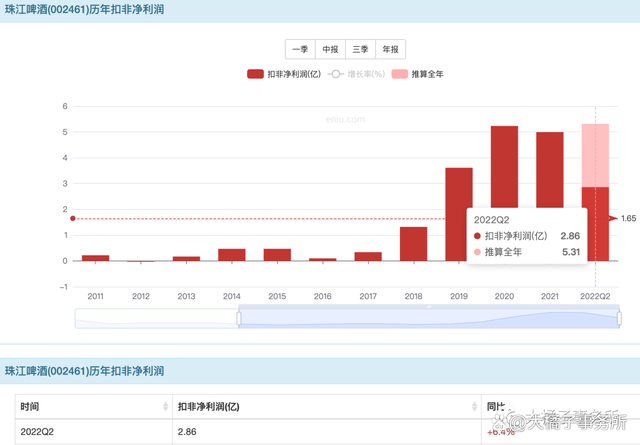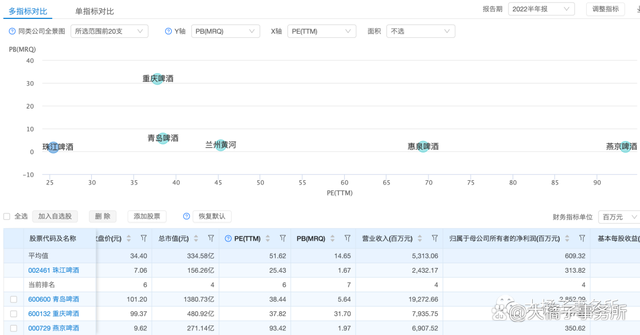 如果只看中报业绩正增长的,就只剩下:珠江、青岛、重庆和燕京了。