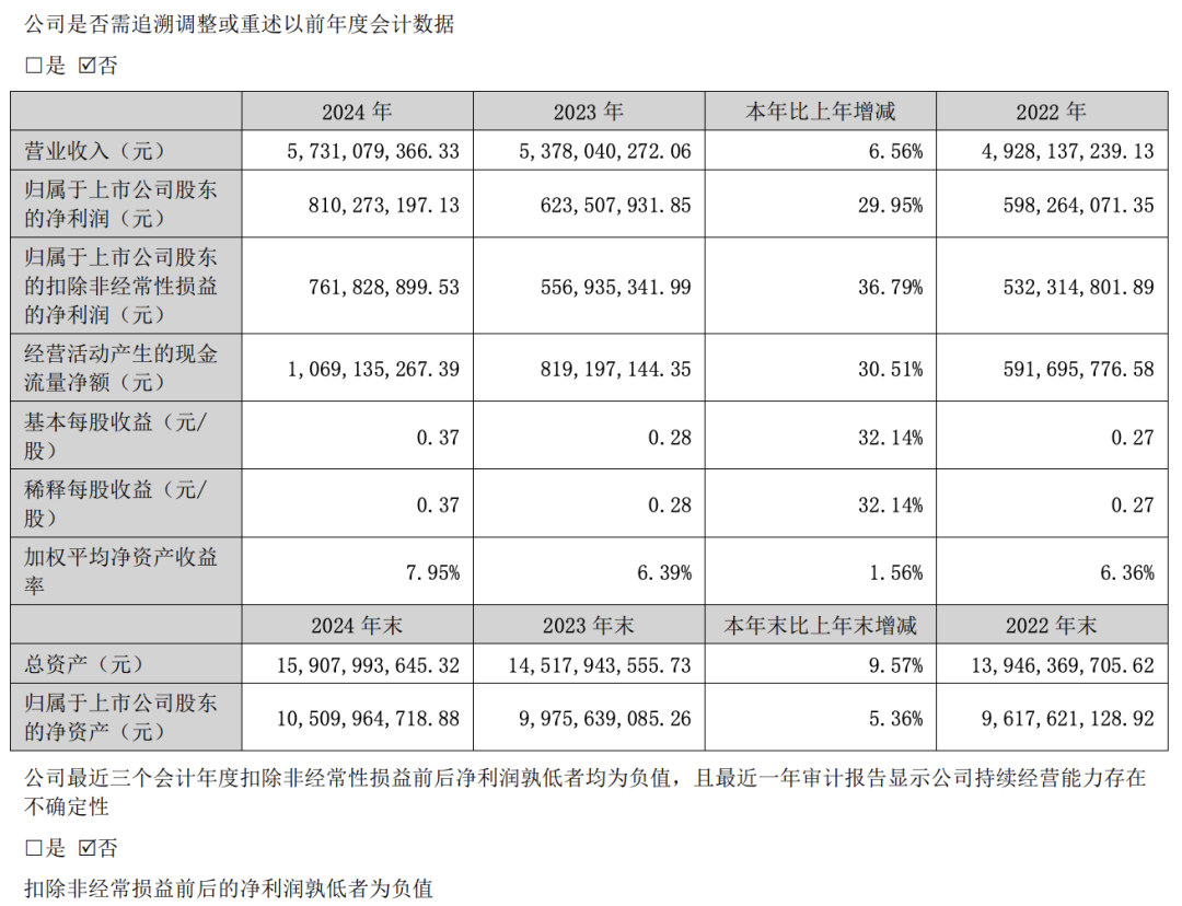 根据2024年财报,珠江啤酒全年实现营业收入约57.31亿元,同比增长6.56%;啤酒销量143.96万吨,同比增长2.62%;归母净利润约8.1亿元,同比增长29.95%,实现了盈利与规模的同步增长。