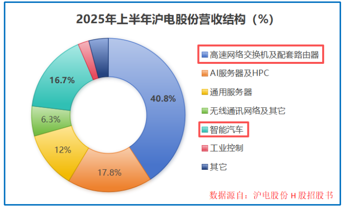 高速网络交换机及路由器、汽车电子,是沪电股份长期依赖的优势市场,2025年上半年,两大业务分别贡献40.8%、16.7%的营收,构成公司业绩的核心底盘。