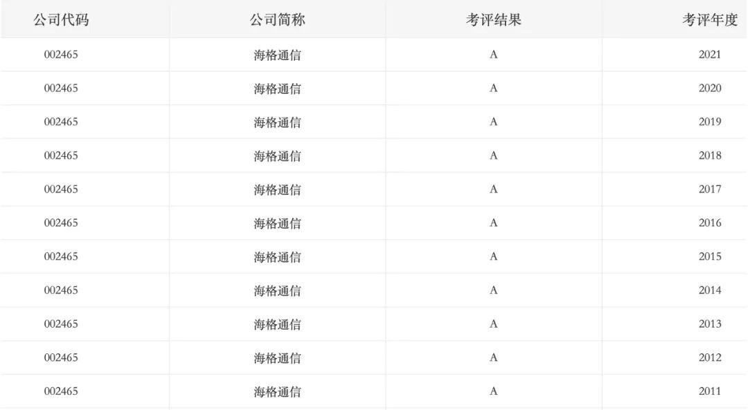 海格通信连续11年获得深交所上市公司信息披露考评最高A级(截图自深交所网站)