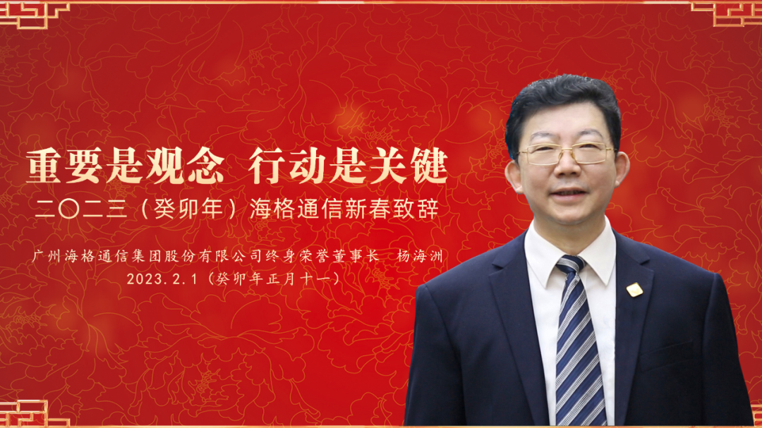 2023年2月1日,海格通信终身荣誉董事长杨海洲向全体海格人作题为《重要是观念,行动是关键》的新春致辞。
